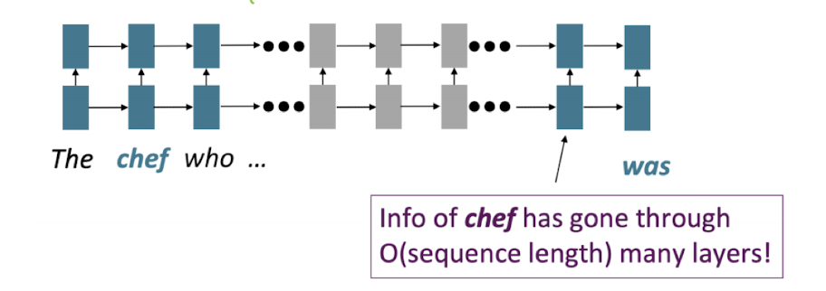 이렇게 chef와 was 거리 사이가 멀면 정보가 소실되거나 약해질 수 있음.