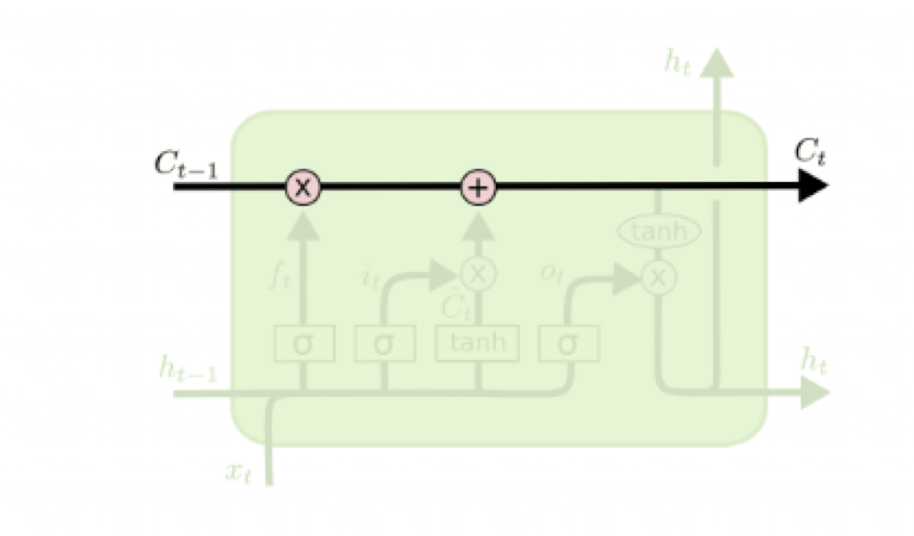 Cell state(가로로 뻗은 선)은 정보를 오랫동안 기억하고 전달하는 역할을 한다.