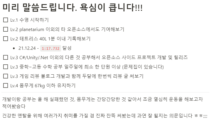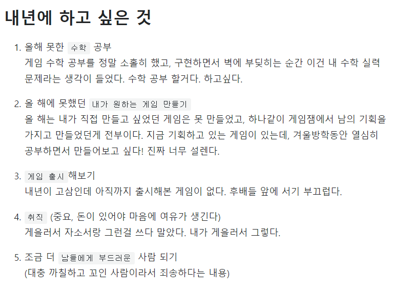 이건 회사 워크샵에서 적었던 신년 목표로 대체하겠습니다.