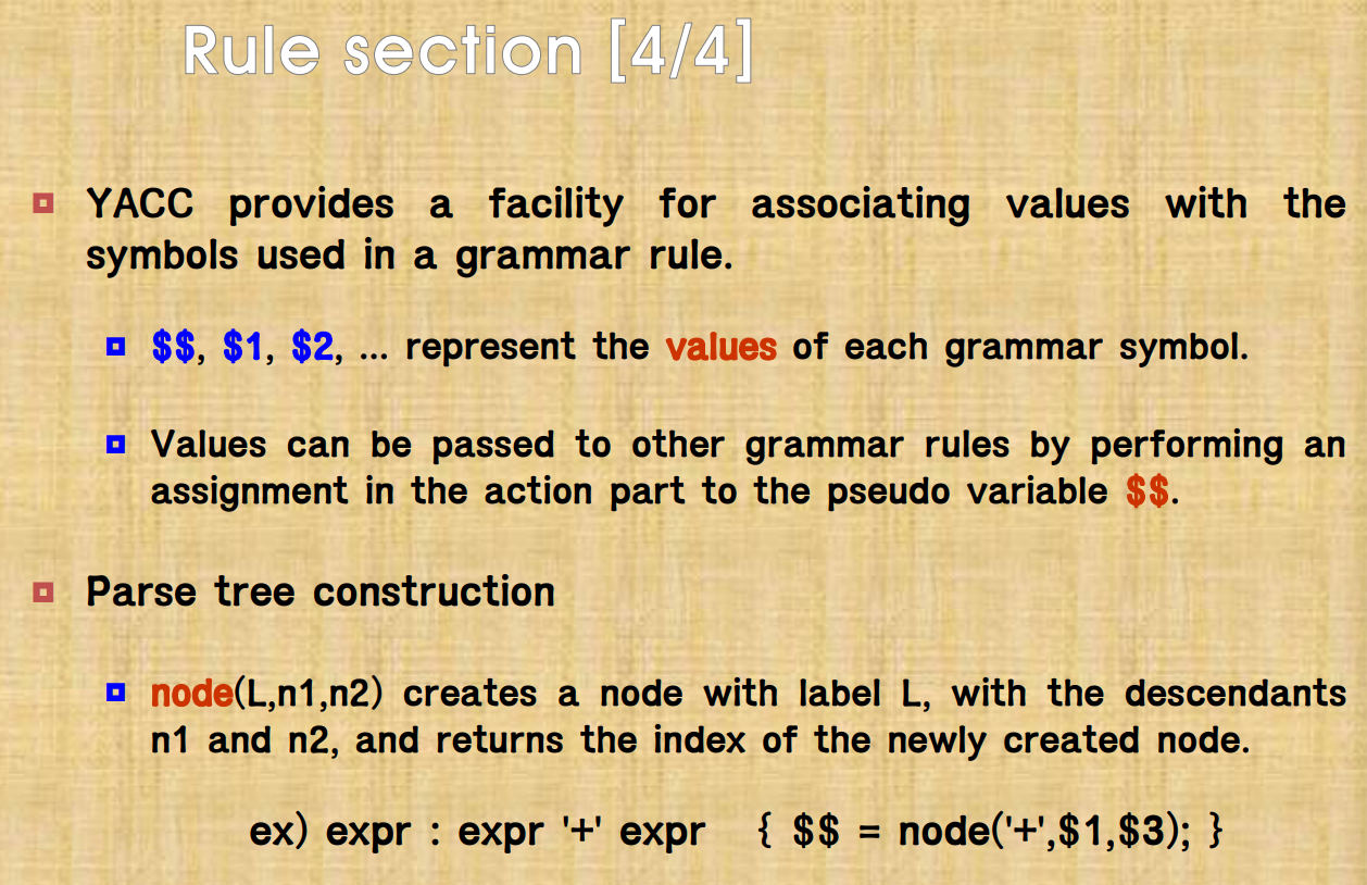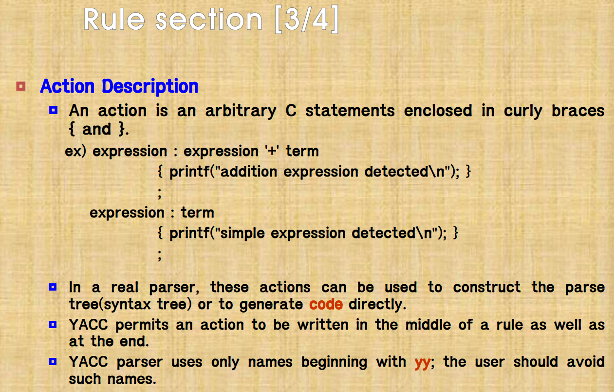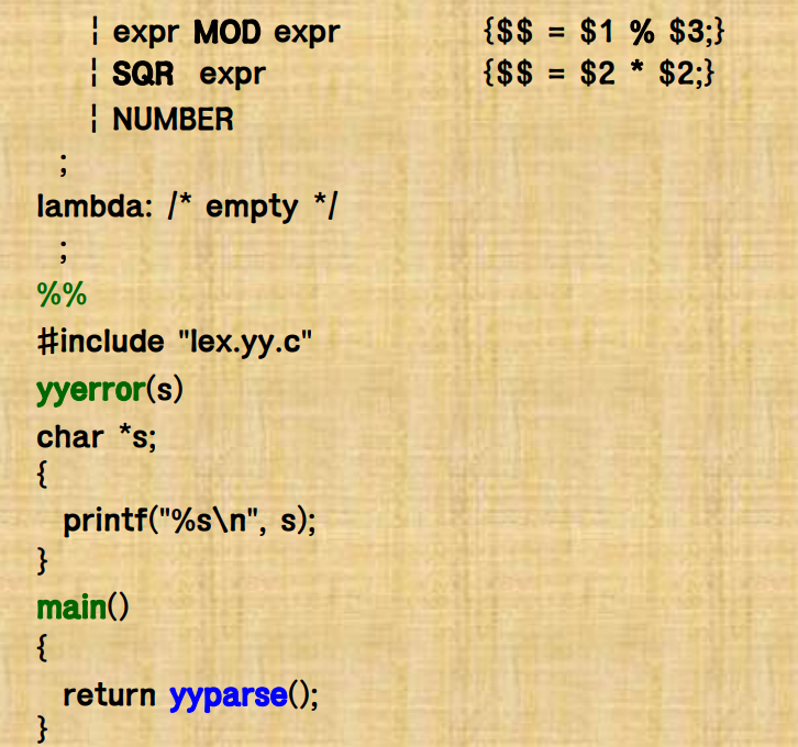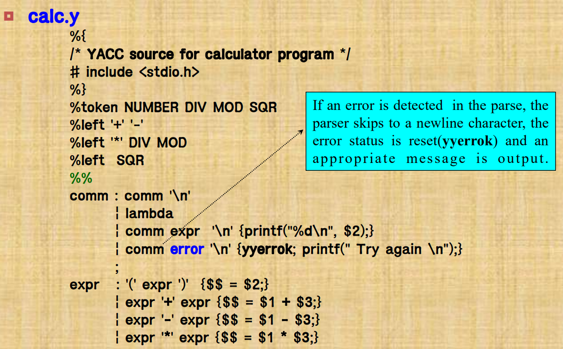 이 정의는 lex에서 주어진 token이 주어지는데 이것과 일치해야한다.