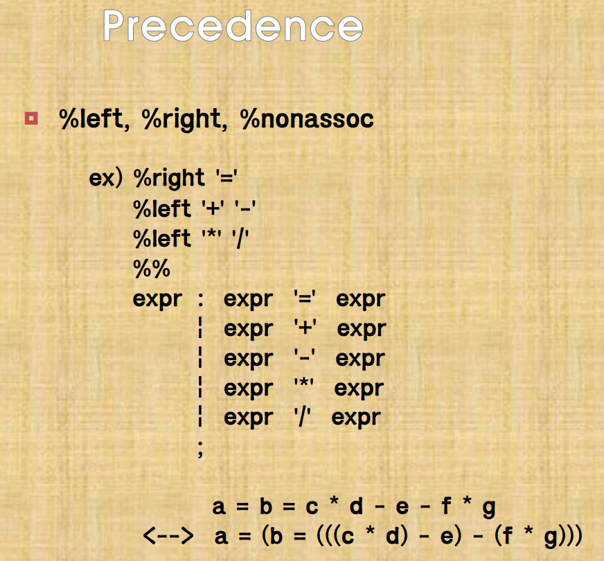 %left '+' '-' 같이 써주면 왼쪽꺼 쓴다.
