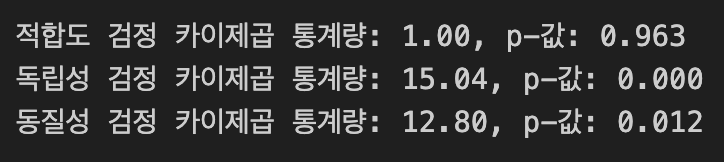 print(f"적합도 검정 카이제곱 통계량: {chi2_stat:.2f}, p-값: {p_value:.3f}")