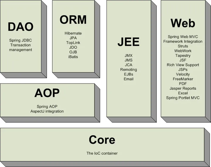 스프링 프레임워크는 총 6개의 모듈로 구성되어 있다.
