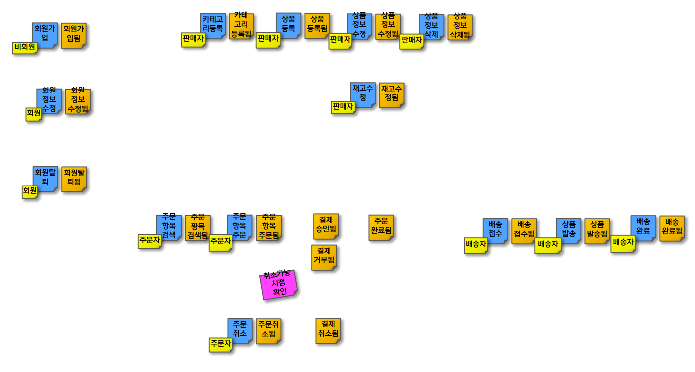 - Command 와 Domain Event 사이에 위쪽에 노랑색 포스트잇을 붙인다.