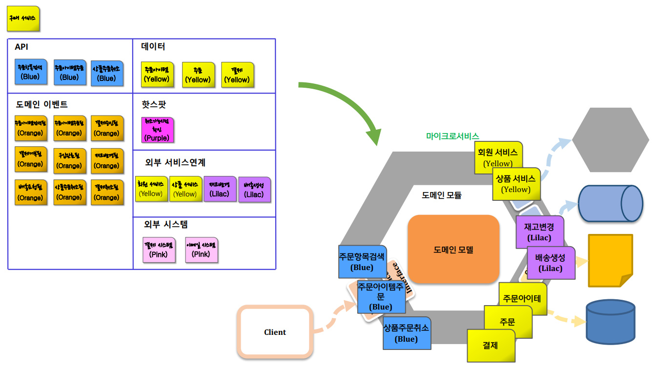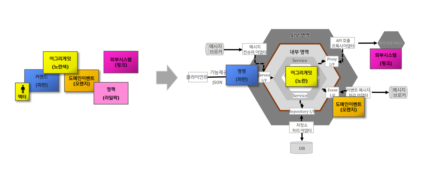 Ex) 이벤트 스토밍 결과를 헥사고날 아키텍쳐와 매핑하기