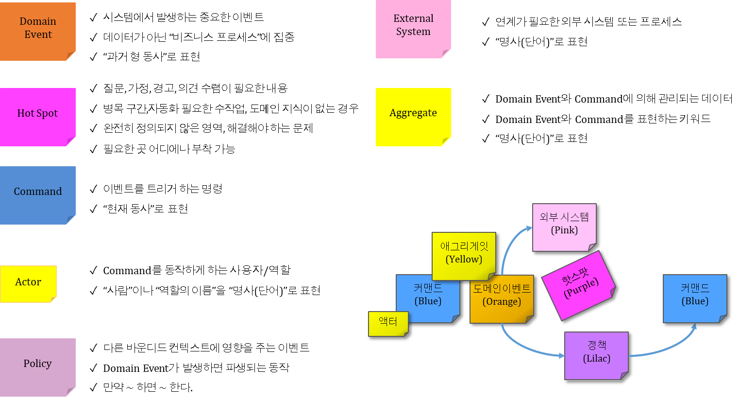 - Command는 Domain Event에 쌍을 맞춰서 Domain Event의 왼쪽에 붙이게 된다.