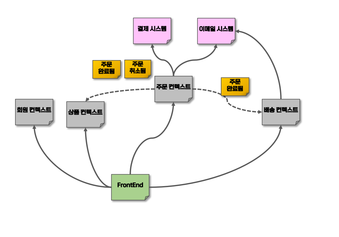 - BC와 외부 시스템을 표현만 하면 이해하기 힘들기에 Front End를 표현하면 이해하기 수월하다