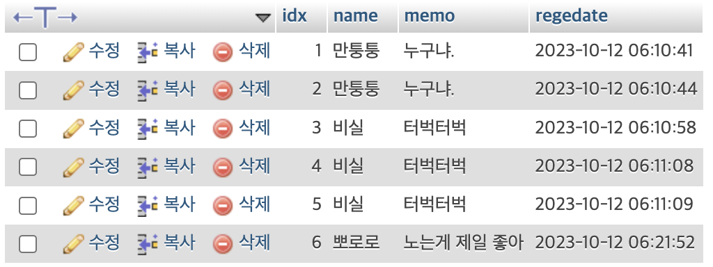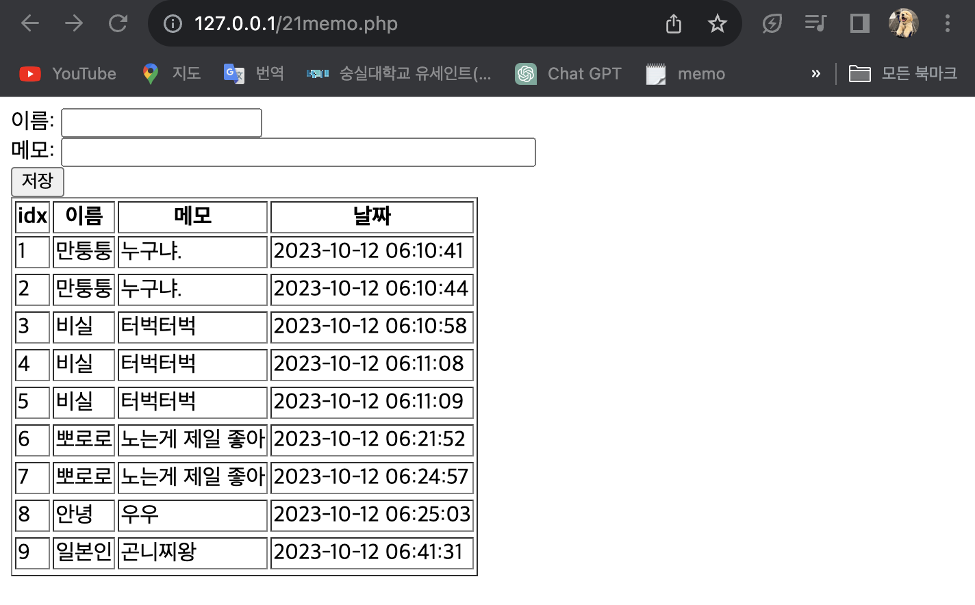 ➡️ memo.php 로 구성된 페이지, 사용자 입력 페이지이다. (html + php)