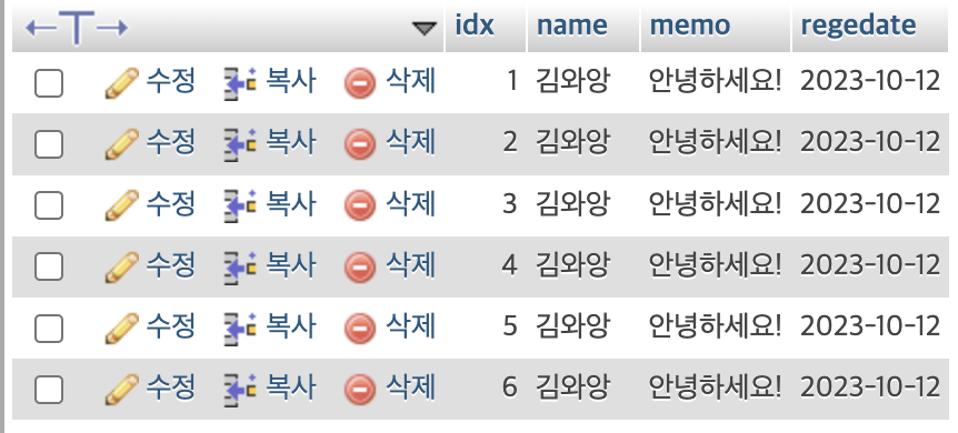 ④ 저장한 데이터 테이블 화면에 출력해서 보여주기