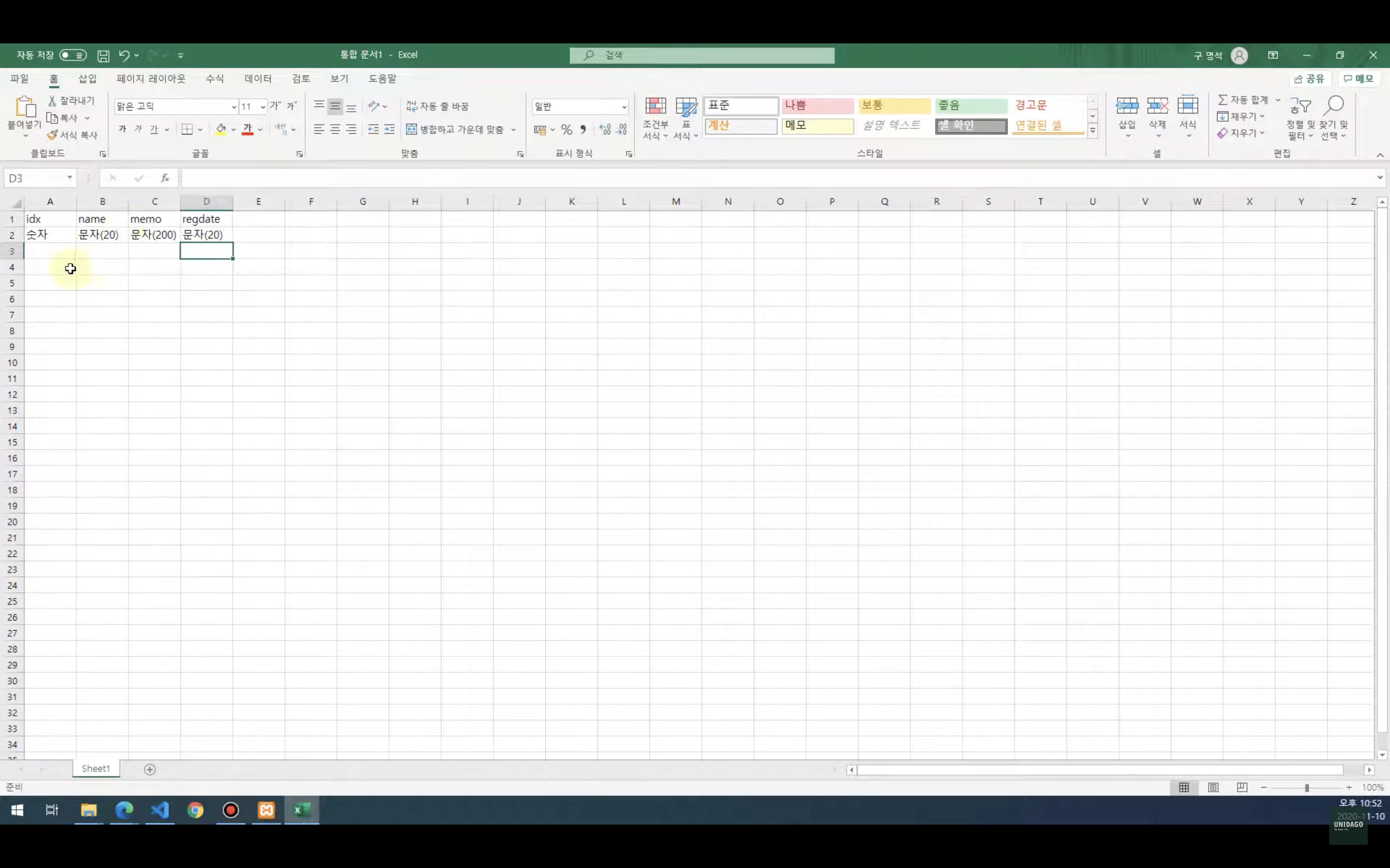 그리고 insert 내용엔 idx를 제외한 나머지 정보만 입력하면 된다.