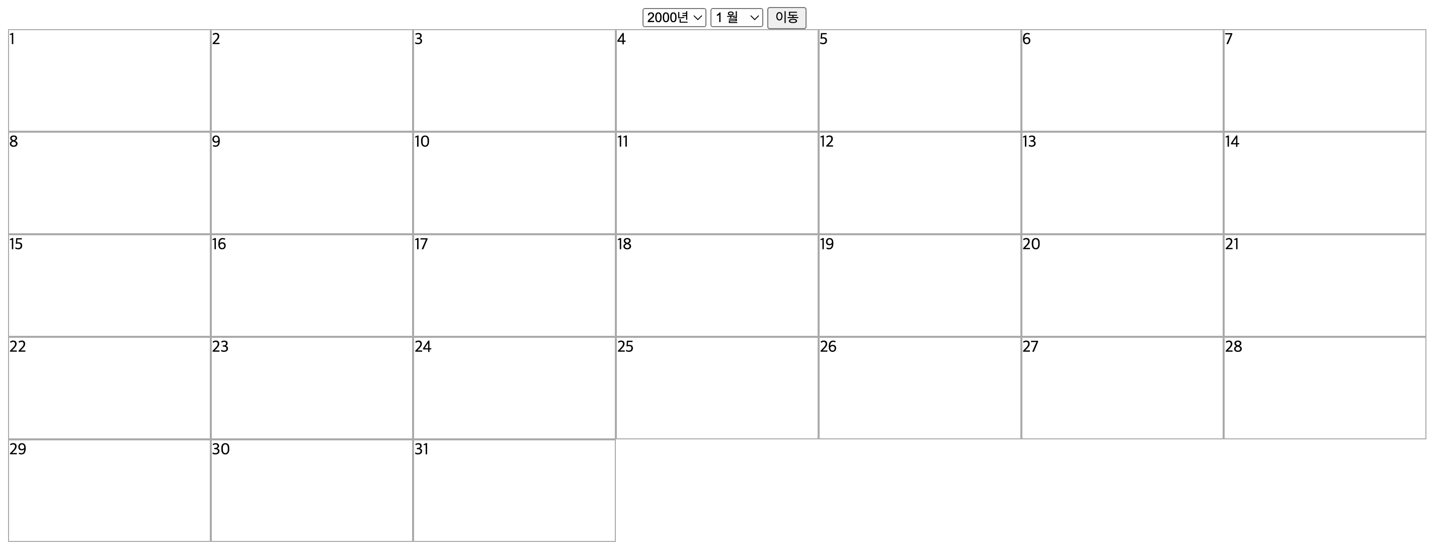 출력된 숫자 만큼 빈 공란이 매달 1일 앞에 생기게 된다.