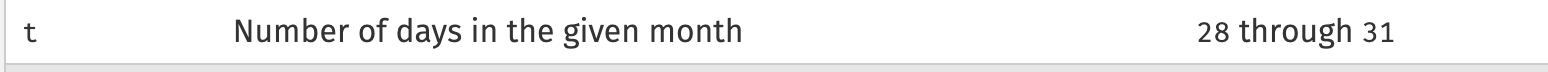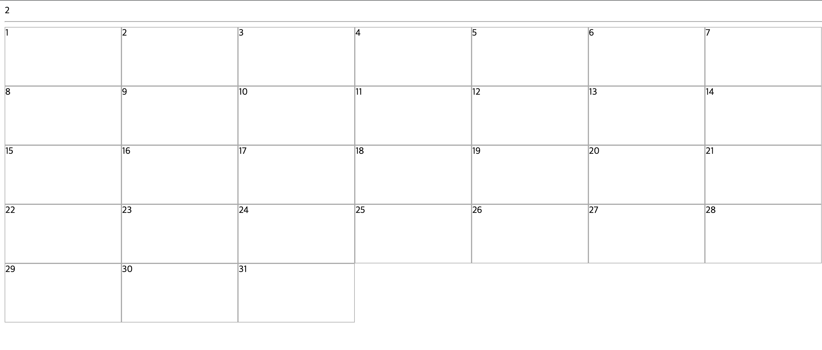 : 달이 일요일부터 시작하는 것을 제외하고는, 시작요일만큼 앞에 빈 공란이 있어야함.