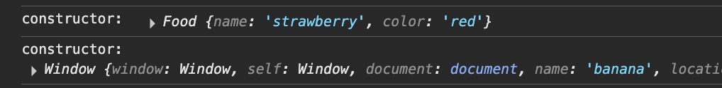 const food2 = Food("banana", "yellow"); // window 가르킴
