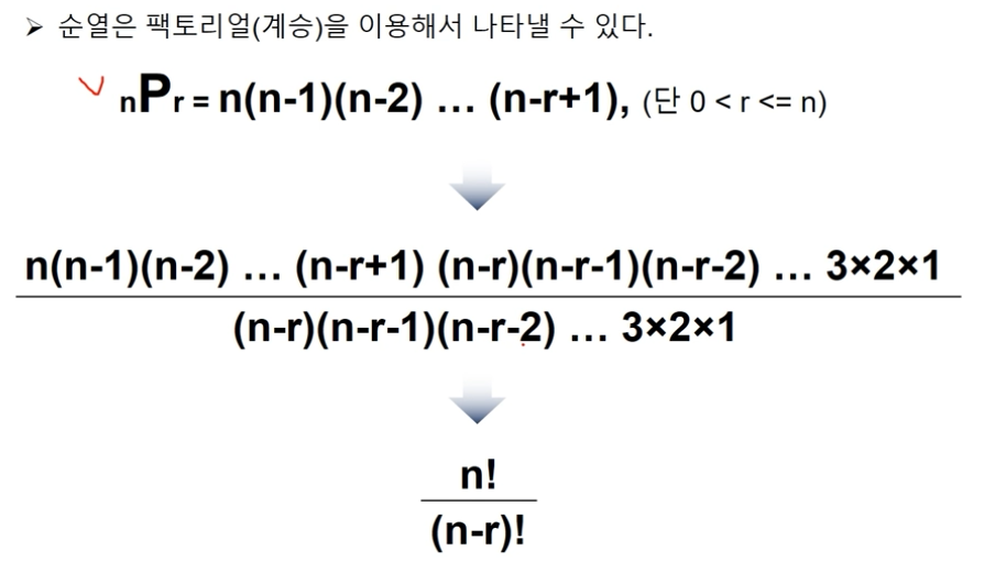: n개에서 r개를 택하여 나열하는 경우의 수