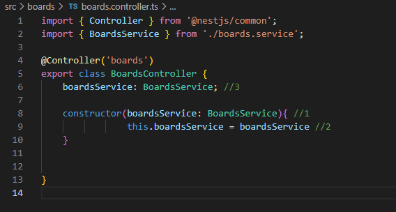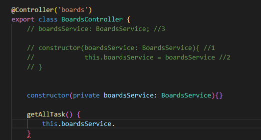 boards.controller.ts 에 위와 같이 코드를 입력하여 줍니다.