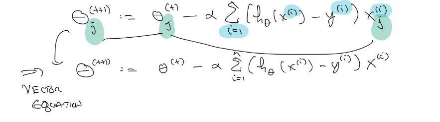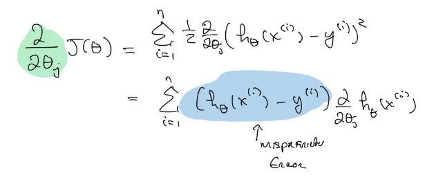 각각의 θ0, θ1, θ2, θ3…는 다른 변수이니 일반화 시켜서 θj 에 관한 미분을 하면 xj 가 나온다.