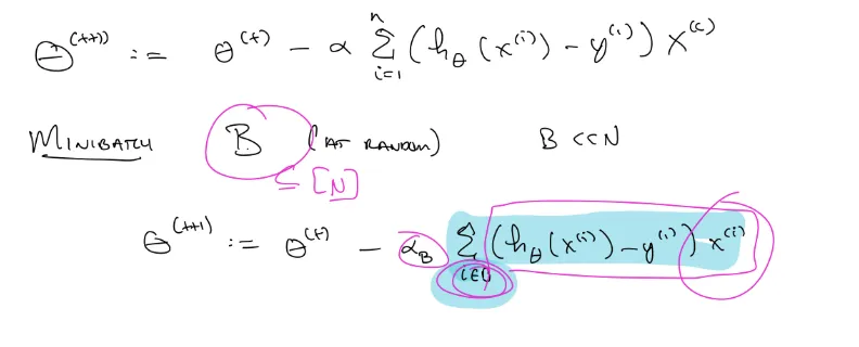 minibatch 는 순서를 셔플해서 n 보다 작은 b 개 만큼의 batch를 정해서 미분하고 그만큼 더 업데이트 하는것이다!