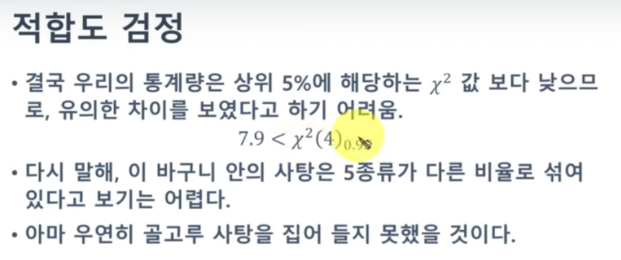 그러면 (분포를 알고나면) 카이스퀘어 값이 주어졌을때, 이 값이 대충 큰지 작은지 판단할 수 있다.