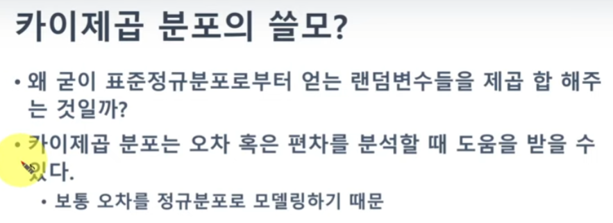 그러면 이 x(카이)가 정규분포라고 하면, x^2는 무슨 분포를 띌까? 가 아주 중요한 질문이다.
