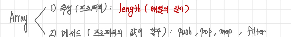 배열은 객체의 한 형태이며 배열도 속성(프로퍼티)와 매서드(프로퍼티의 값이 함수)를 가질 수 있음을 의미한다.