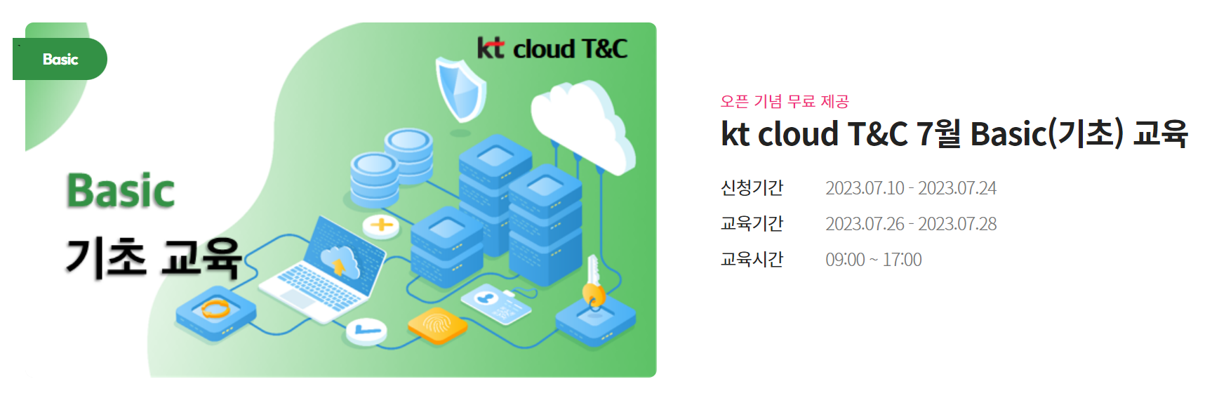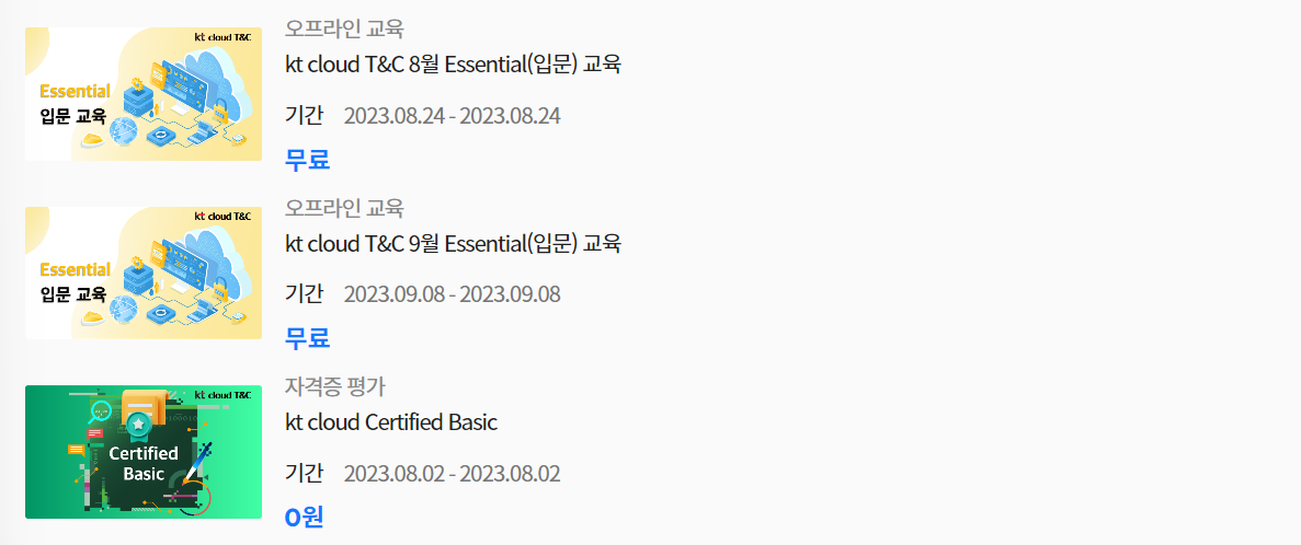 여러 교육 중 가장 빨리 수강할 수 있는 클라우드에 대한 기본적인 이해와 실습을 해볼 수 있는 경험이 있어서 kt cloud T&C 7월 Basic(기초) 교육을 신청하게 되었다.