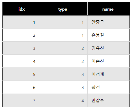 예제 테이블 : hero_collection