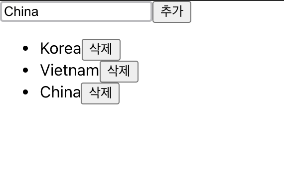 // 리스트에 삭제버튼을 만들어서 클릭하면 리스트에서 삭제
