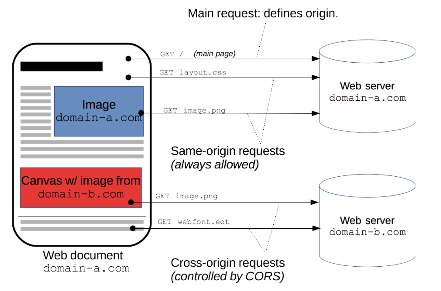 A서버에 연결하면 원천적으로 B서버와의 연결을 막아버리는 것을 Same-origin policy