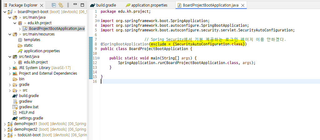 → Spring Security 라이브러리 기본 제공 / 기본 생성 클래스에서 구문 추가하여 이용 X 처리