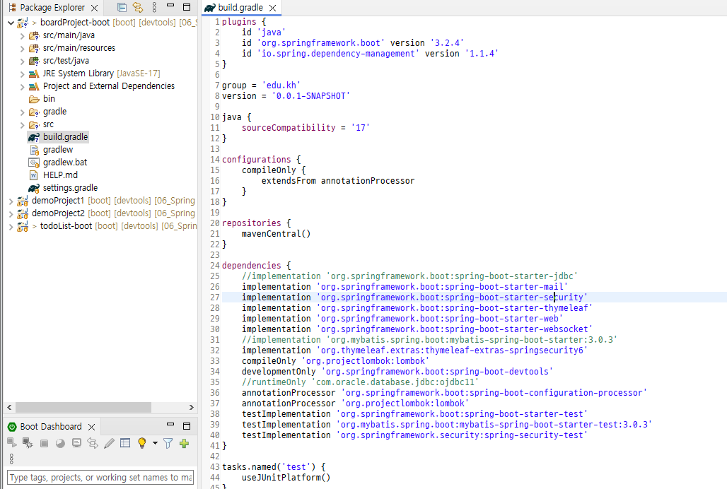 ✅ DBConfig.java 파일 옮기고 gradle 주석 제거 후 리프레시