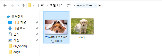 // C:/uploadFiles/test/파일명으로 서버에 저장