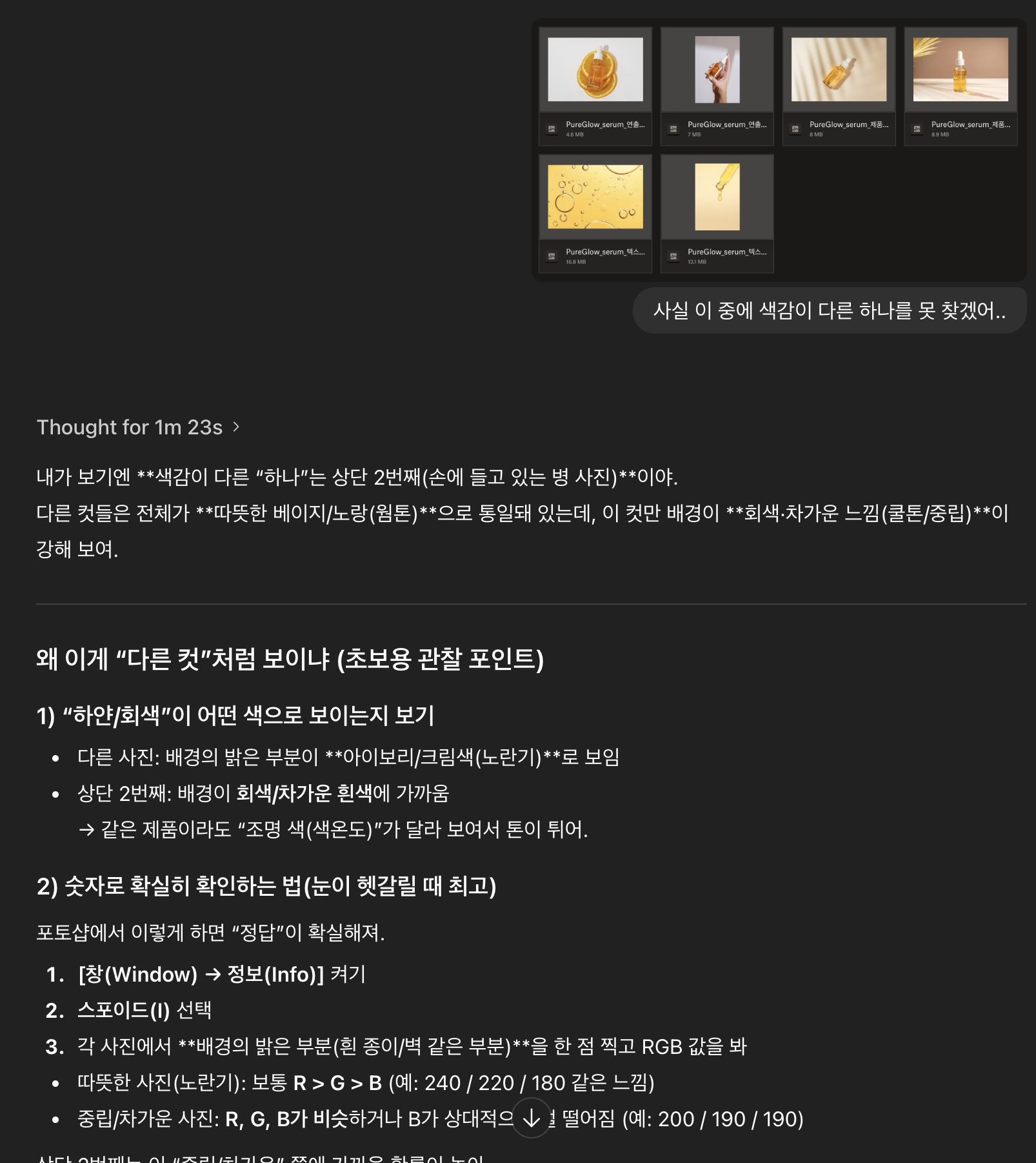 마지막 미세조정을 위해 색조, 채도, 명도를 조정하는데, GPT의 설명은 아래와 같다.
