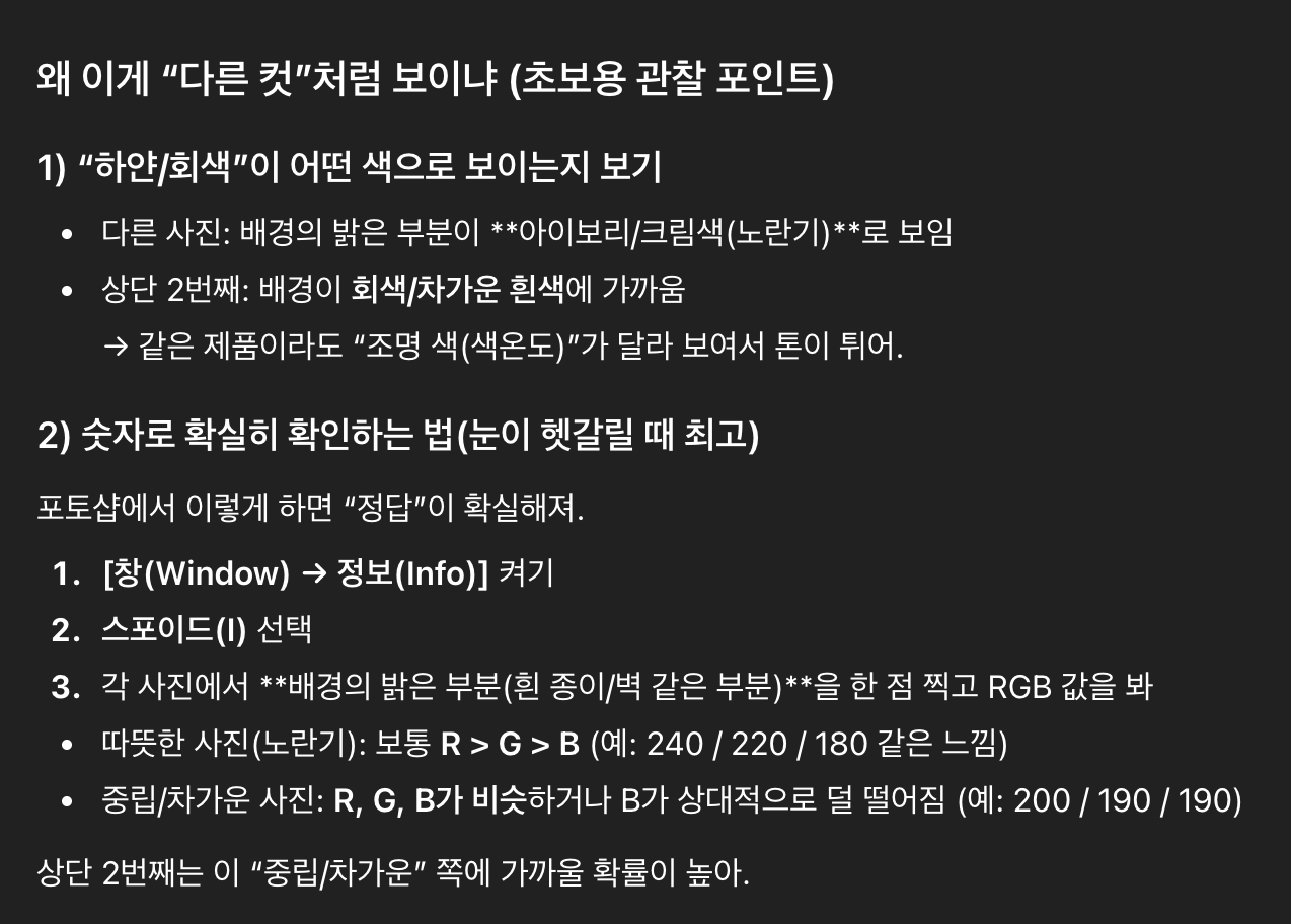 당황스럽다. 내 눈에는 모두 주황색의 동일한 색감인데... 네...?