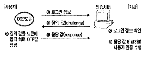 - OTP 기기와 인증 서버 간에 미리 설정되어 있는 동기화 정보가 없어, 인증 요청시 사용자가 직접 임의의 난수 값을 OTP 기기에 입력하여 OTP값을 생성