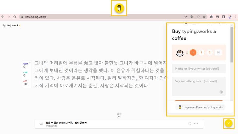왼쪽 밑의 커피 모양 버튼을 누르면 개발자에게 커피를 사줄 수 있는 서비스도 있다. 후원이라고 생각하면 될것 같다.
