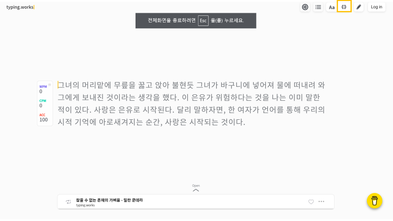 다음 버튼은 전체화면 버튼이다. 필서에 집중할 수 있는 버튼이라고 생각된다.