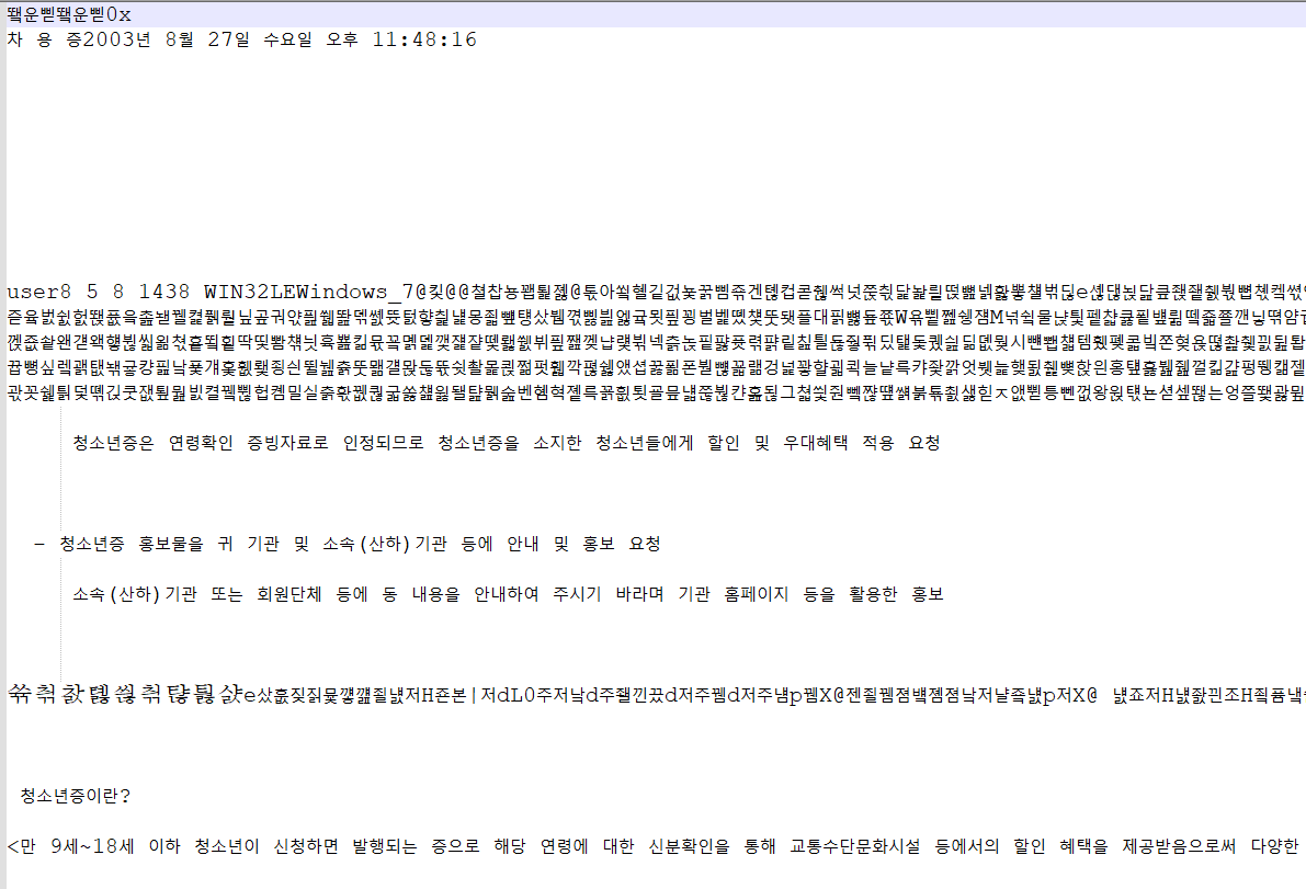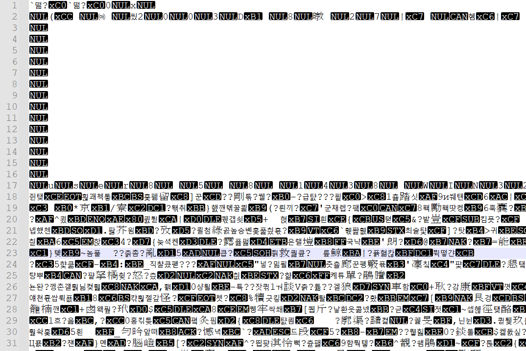 다만 이를 바로 열어보면, 위 사진처럼 내용을 확인할 수 없는데