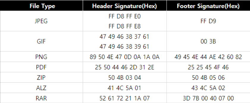 바이너리 데이터 내부에 이미지 파일 헤더가 존재하는지 찾고,