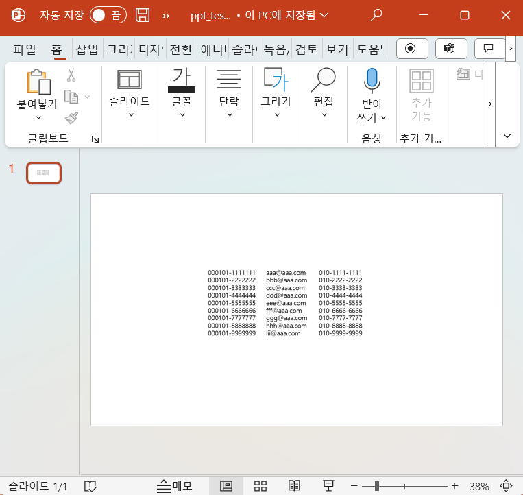이번에는 ppt에 개인정보가 적힌 이미지를 넣었다.