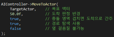 AI Character 이동 시에는 AIController의 내장 함수인 MoveToActor()