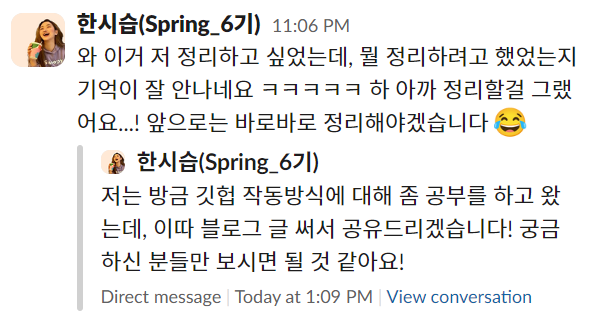 그래도 비교적 초반에 발견한 이유는 다행히(?) 음원파일이 이슈창에 올라가지지 않아서 음원파일 주소를 생성하지 못했고, 결국 튜터님께 물어보러 갔다. 결과적으로 Git hub 작동방식에 대한 강의를 짧막하게 듣고 왔다. 너무 감명받아서 이 가르침을 조원분들께도 공유 드리고 싶었는데.....