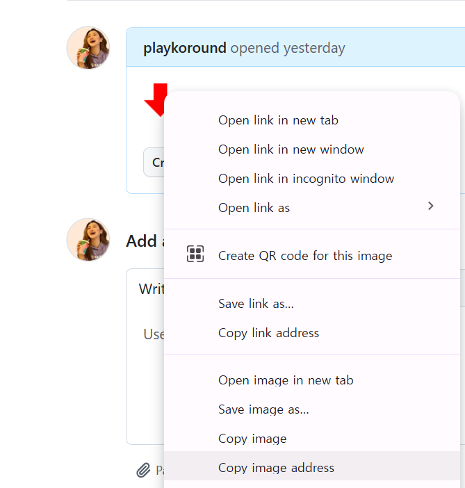 바로 에러가 떴을 때 해결하고 작성해놓는 이슈칸을 이미지 주소 생성기로 사용한 것이다.