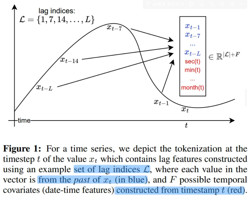 - A univariate sequence of length along with its covariates is tokenized by concatenating the covariates vectors to a sequence of C tokens