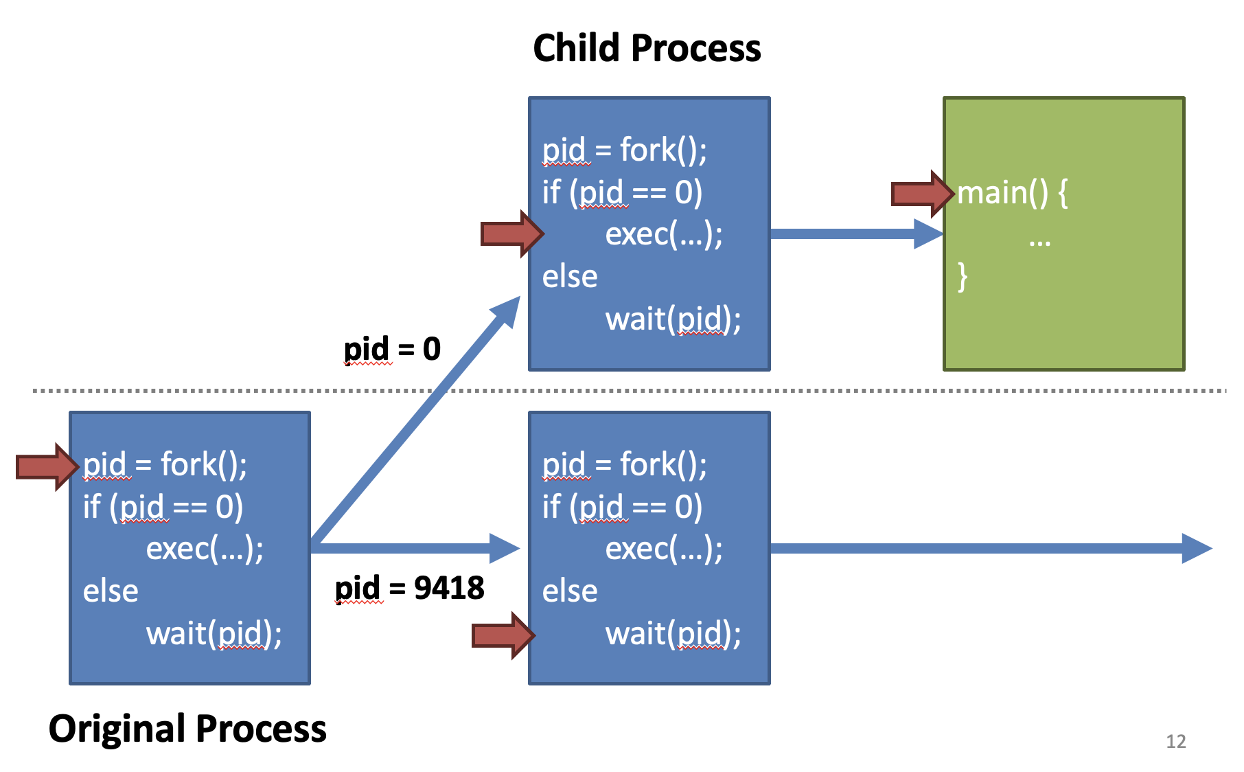 - Parent has non-zero pid (the child's pid)