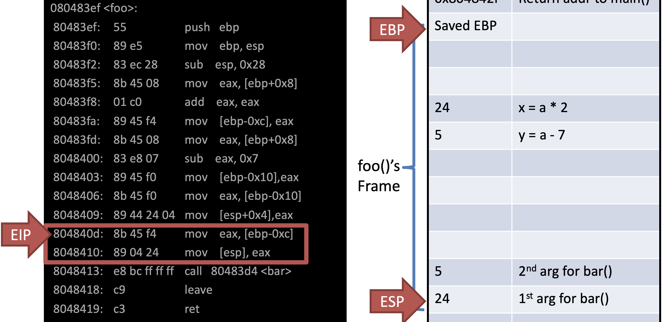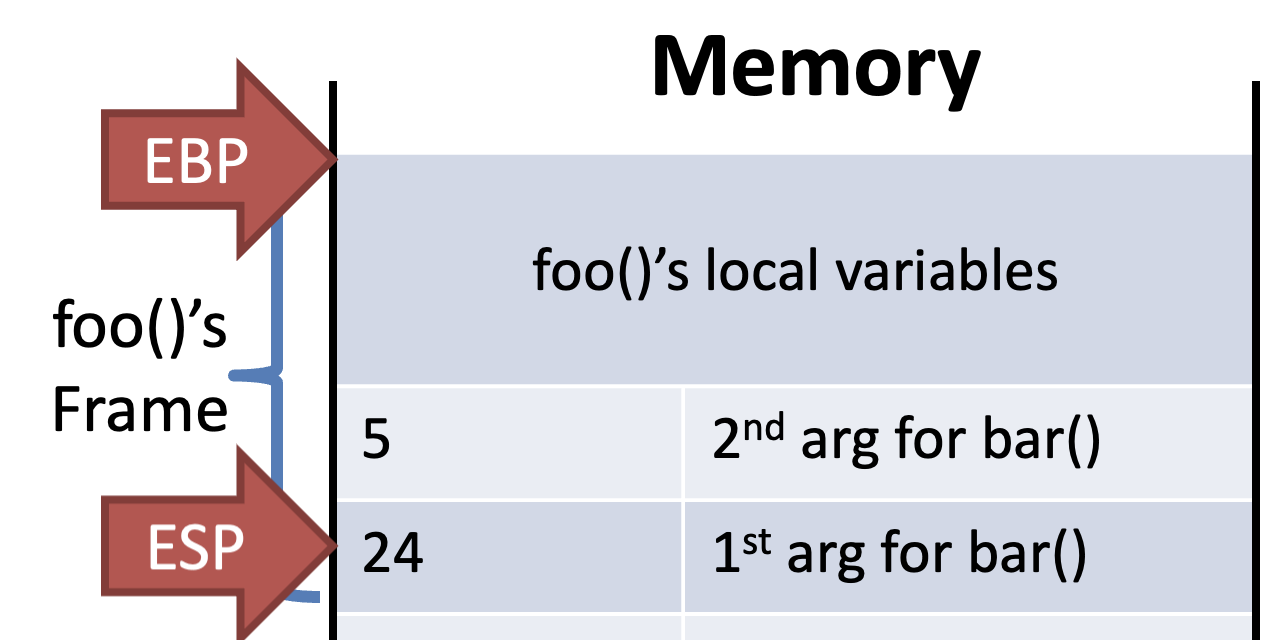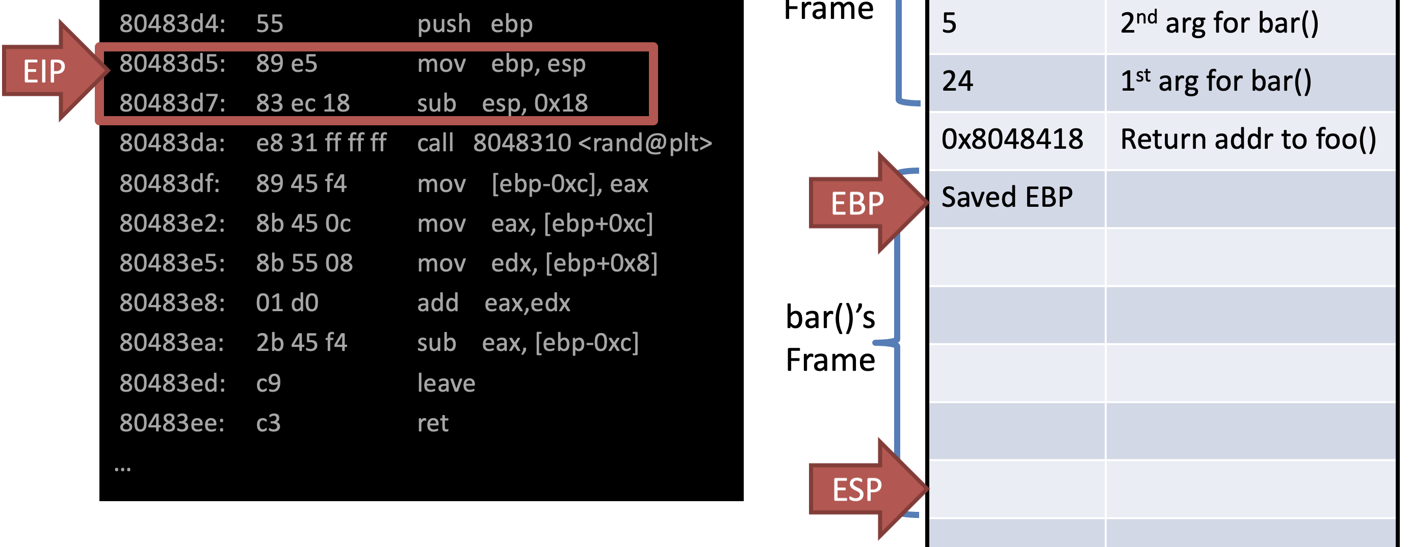 - EBP points to the base of the current frame