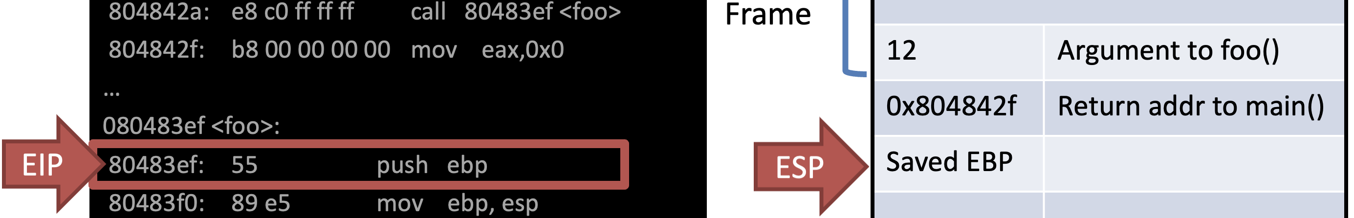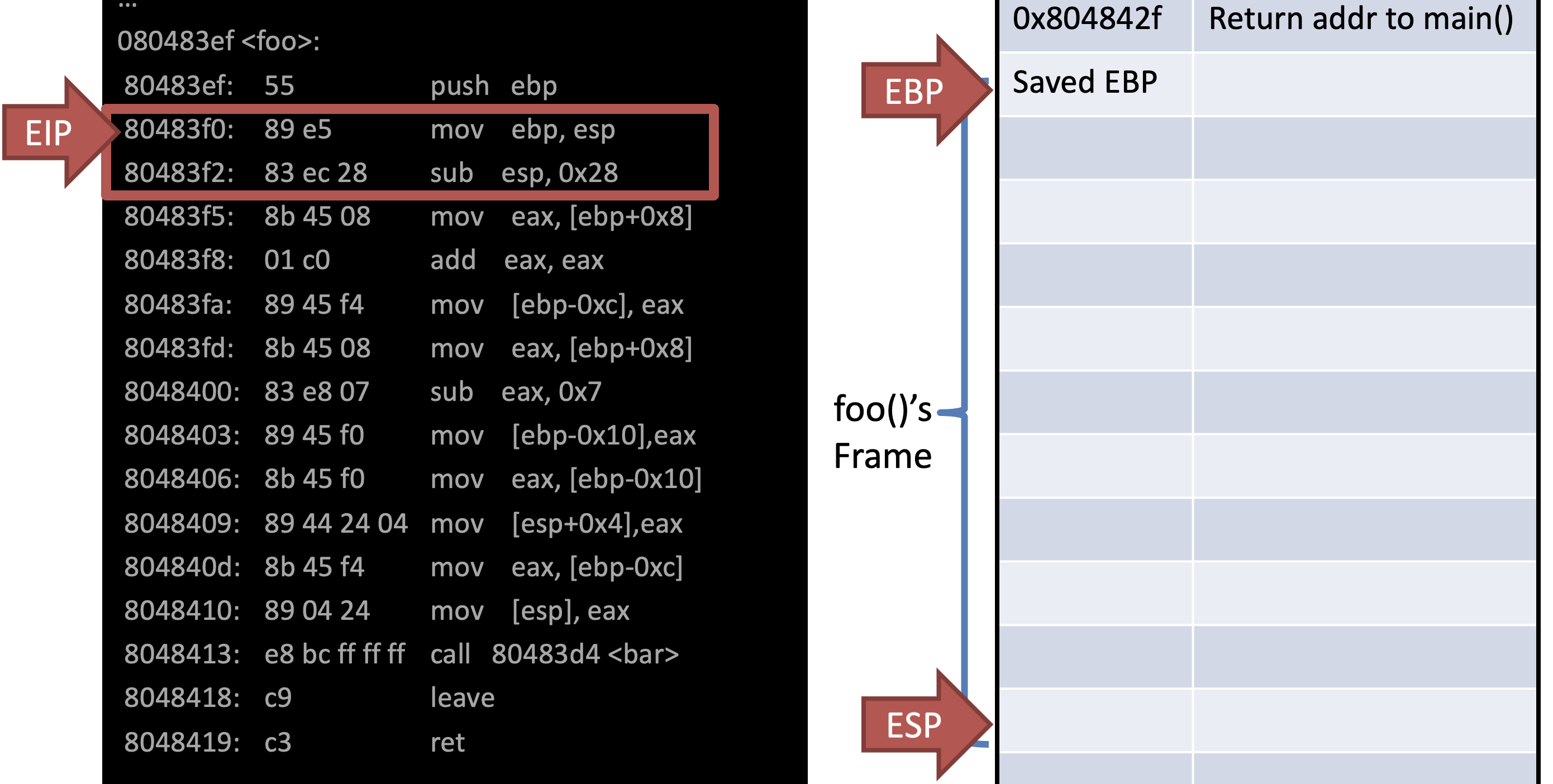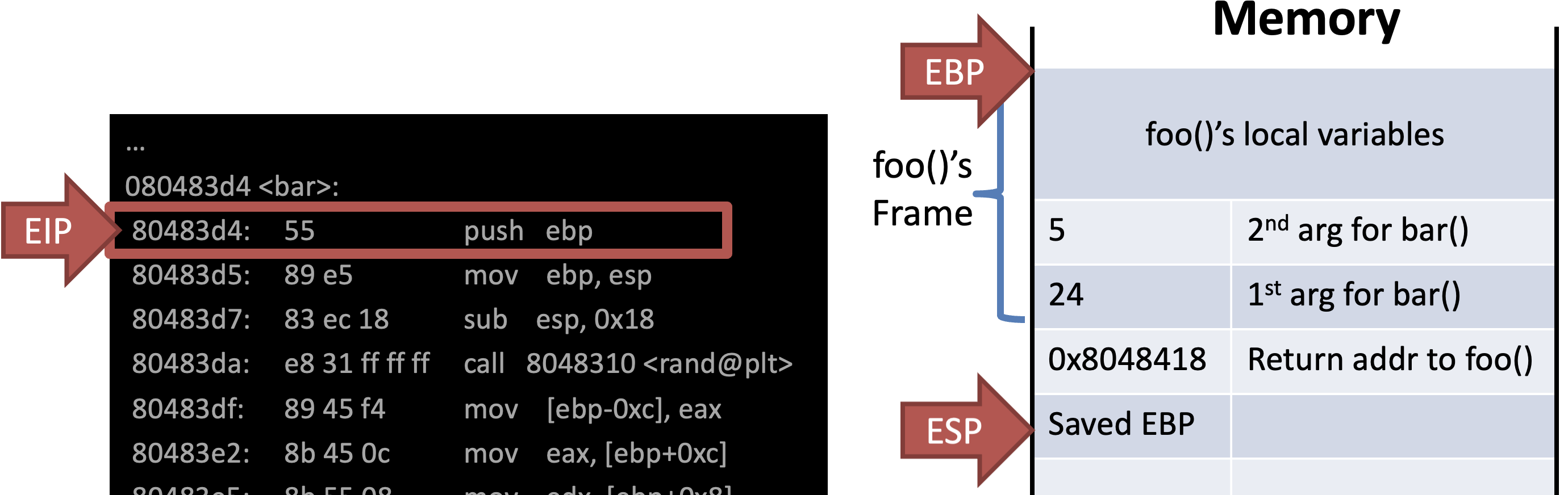 - EBP points to the base of the current frame