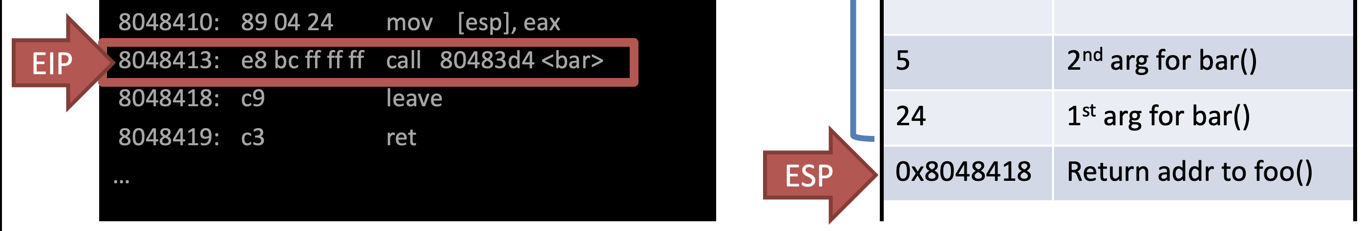 - ESP = A newly allocated stack