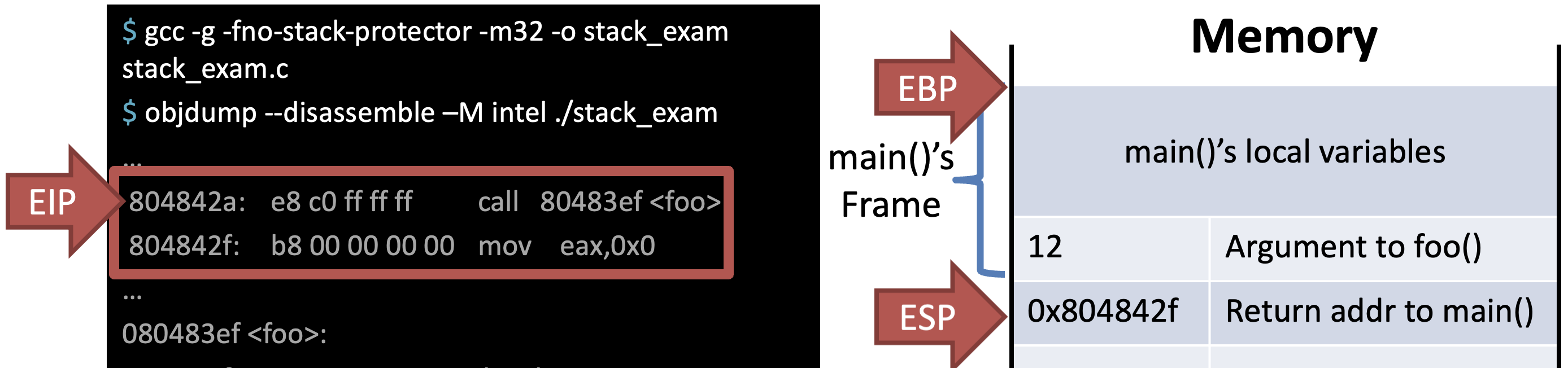 - EIP = Entry point in the ELF header