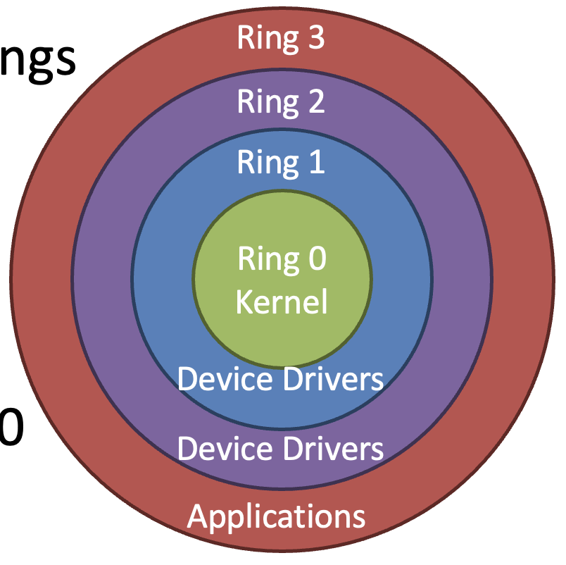 - Ring 0: OS kernel