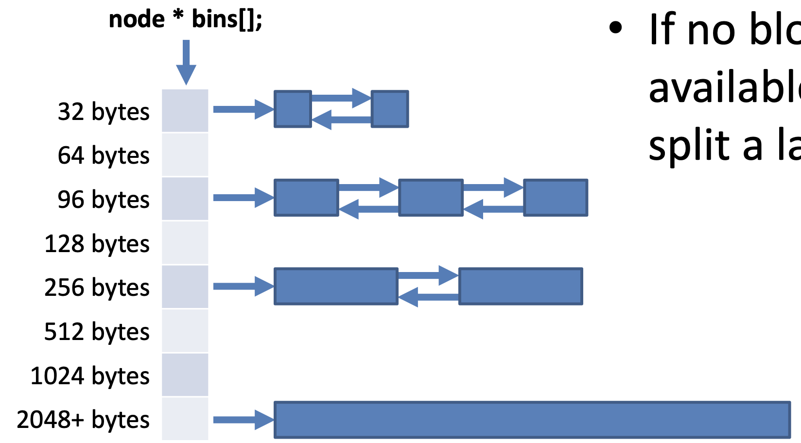 - Most allocations is O(1) time by pulling a free block from the appropriate list